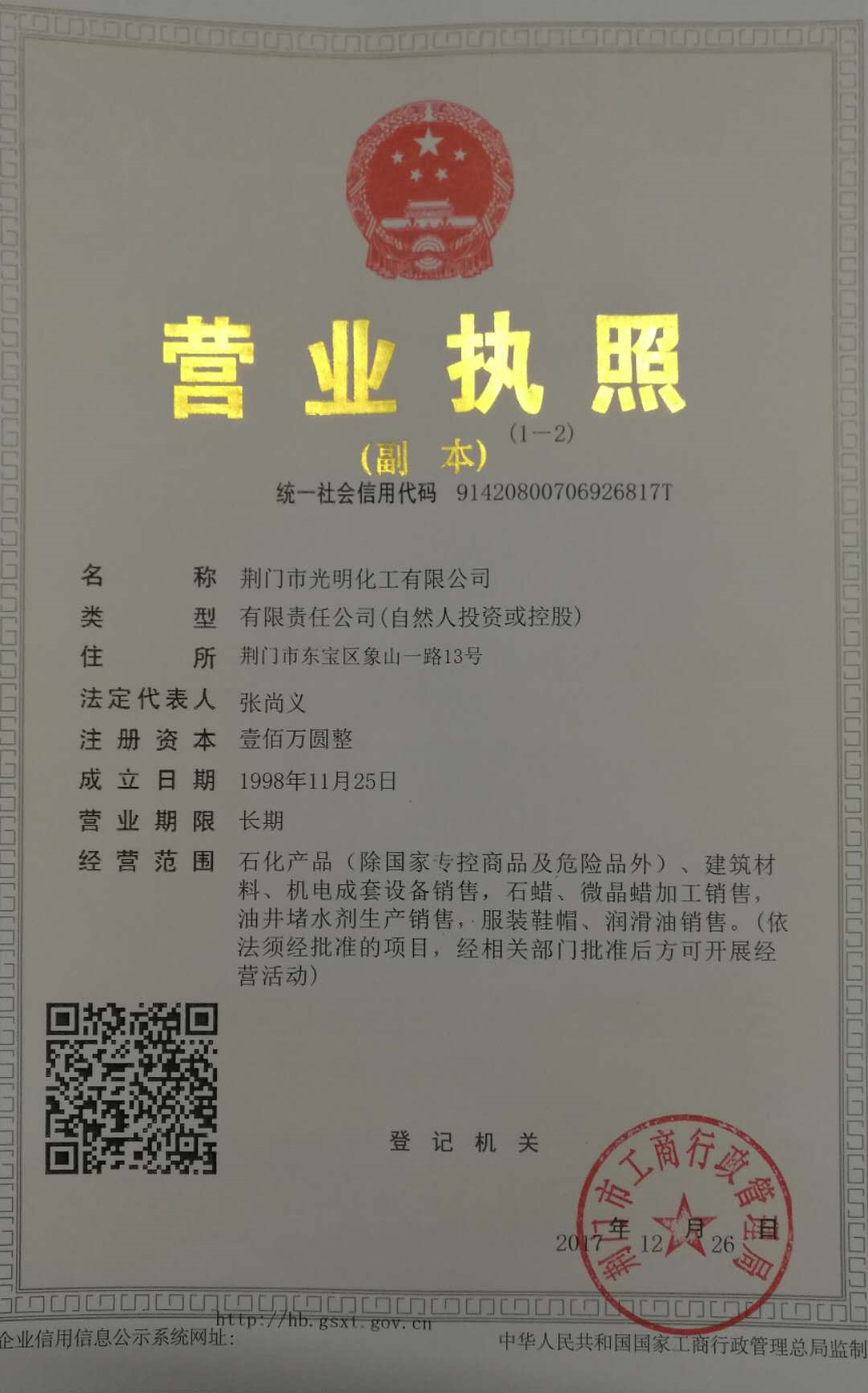 © 2014荊門市光明化工有限公司 版權(quán)所有 電話:13908690979 地址 : 荊門市象山一路18號 未經(jīng)許可不得復(fù)制轉(zhuǎn)載 備案號: 鄂ICP備18000091號-1 荊門百捷 技術(shù)支持